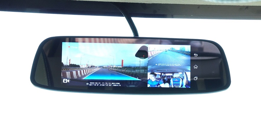 - Camera trong xe có độ phân giải VGA, góc rộng 120 độ, làm nhiệm vụ giám sát các hoạt động trong cabin xe. Nó được thiết kế ẩn trên mặt gương, người ngồi trong xe khó có thể phát hiện ra camera trong xe này.